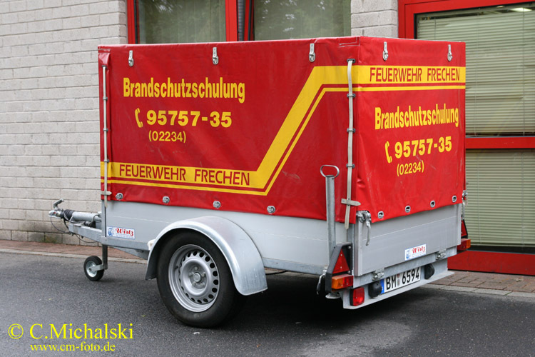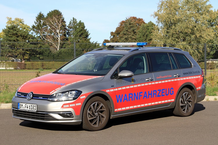 Einen Personenkraftwagen PKW auf einem VW Golf Variant 1.6 TDI Fahrgestell mit einem Ausbau der Firma Glasmacher setzt die Feuerwehr Frechen seit März 2019 als Warnfahrzeug ein, um die Bevölkerung bei Austritt von gefährlichen Substanzen durch Sirene und Lautsprecherdurchsagen warnen zu können.