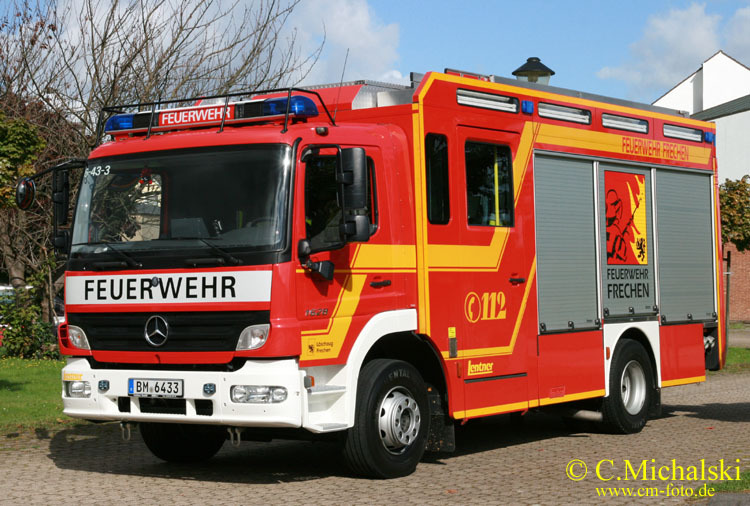 Eine bis zu diesem Zeitpunkt noch nie bei einer Feuerwehr im Rhein - Erft - Kreis stattgefundene Aktion macht seine Runde. Für umgerechnet rund 1.200.000,- Euro wurde die Feuerwehr Frechen schlagartig modernisiert, um dem derzeitigen Stand der Brand- und Gefahrenabwehr gerecht zu werden. Gleich drei neue Hilfeleistung-Löschgruppenfahrzeuge HLF 20/16 auf einem Fahrgestell von Mercedes Benz Atego 1628 / 38,6 mit einem Aufbau der Firma Lentner, nahmen im Juni 2006 ihren Dienst bei der Frechener Feuerwehr auf. Das erste HLF 20/16 wurde der hauptamtlichen Wache zugeteilt, die damit ihr Löschgruppenfahrzeug LF 16/12 aus dem Jahre 1991 ersetzten, was wenige Monate zuvor seinen Dienst auf Grund von nicht mehr reparierbaren technischen Mängel selbst quittiert hatte. Das zweite HLF 20/16 ging an den Löschzug Frechen, die damit einen Rüstwagen RW 2 aus dem Jahre 1982 und den Abrollcontainer mit Rüstmaterial AB-Rüst aus dem Jahre 1992, der im Laufe seiner Dienstzeit nur ganz selten zum Einsatz kam und zur Feuerwehr Pulheim, Löschzug Stommeln umgesetzt wurde, ersetzten und das dritte HLF 20/16 ging an den Löschzug Habbelrath, die damit das Löschgruppenfahrzeug mit eingeschobener Tragkraftspritze LF 16/TS aus dem Jahre 1987 ersetzten, welches an den Löschzug Elsdorf abgegeben wurde. Eingebaut ist in diesen Fahrzeugen eine Godiva-FPN 10-3000 und es werden jeweils 2000 l Wasser mitgeführt. Die beiden HLF 20/16 der Löschzuge Frechen und Habbelrath sind bis auf wenige kleine Ausnahmen identisch, während sich das HLF 20/16 der hauptamtlichen Kräfte durch gravierende Änderungen von den andern beiden unterscheidet. Es besitzt unter anderem eine Zugvorrichtung (Rotzler TR 030/5, 50 Kn). und auf Grund der eingeschränkten Platzverhälnisse keine Haspel am Heck.